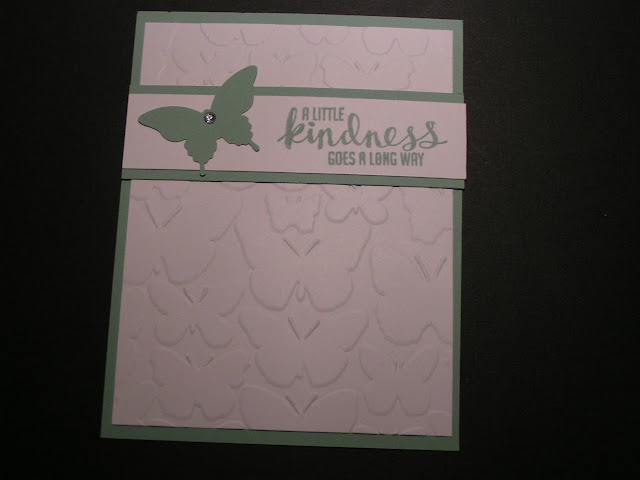 No Name, I hate not being able to give credit for these cards! This cards reverses the Fluttering embossing folder and love the Soft color Butterfly behind the Island Indigo cut out Butterfly. Lost Lagoon, Soft Sky and Island Indigo.