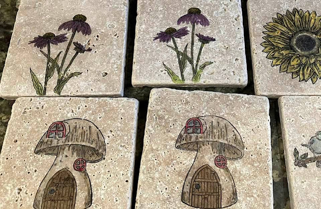 The Birds and Sunflowers have always been a favorite. Red Rubber Cling stamps work the best on Coasters.